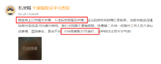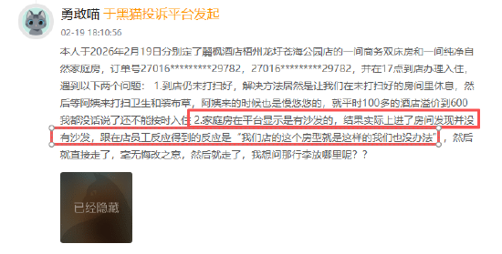 有多位消费者向黑猫投诉平台反馈,自己在麗枫酒店入住时发现自己实际入住的房型/室内布置与酒店线上展示图不一致,有消费者预定大床房,实际入住时被安排双床房,退房时反被酒店工作人员索取30元差价,还有消费者在入住家庭房后,发现室内并无展示图中的沙发,向酒店工作人员反馈后,工作人员仅表示“我们这个店就是这样的”。